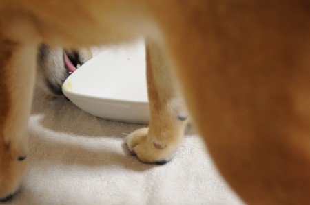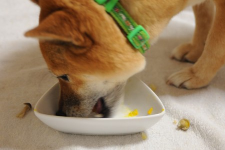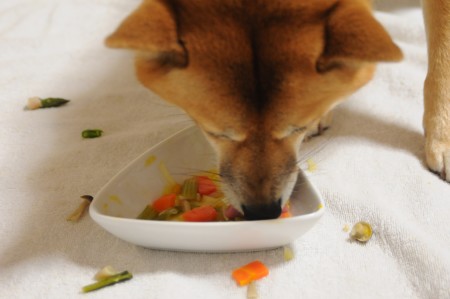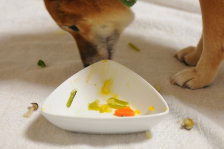 バロンも固形のドックフードの野菜だけ、器用にはじいてました(^^ゞ