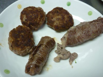 わさび用のわんバーグと、わさび用のエリンギ巻きを