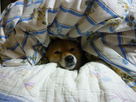 夜は羽毛布団にくるまれて(て、本当にくるまってるよ)