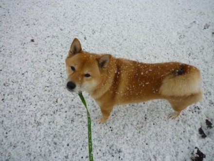 でしょでしょー。柴犬と雪って絵になるもん。