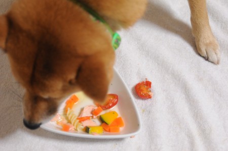 わさびちゃん、野菜も全部食べたのね〜!と思ったら