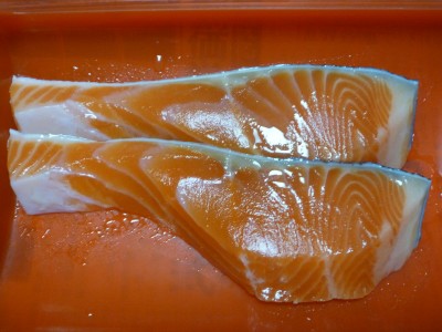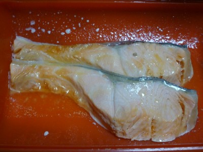 鮭は、ルクエのシリコンスチーマーに入れて(左)