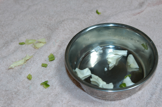 ・生キャベツの固い芯の部分と、生ピーマン(←母が切った)