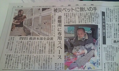 ・ ペット同伴の避難者を支援 県など「動物救済本部」設置 /新潟 毎日新聞3/22(※上記NDNさんがでています)