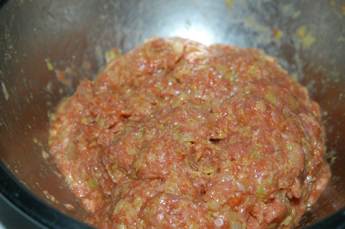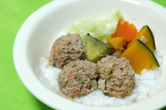 (牛ひき肉・茹でキャベツ・すりおろし人参・卵・パン)