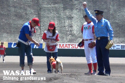 そして、始球式は小諸市の三石(みついし)警察署長さん。