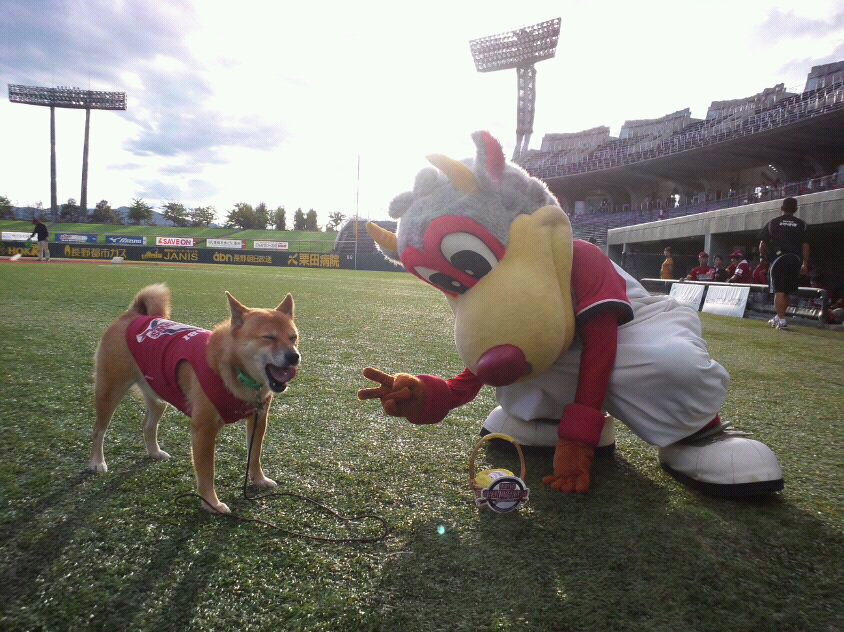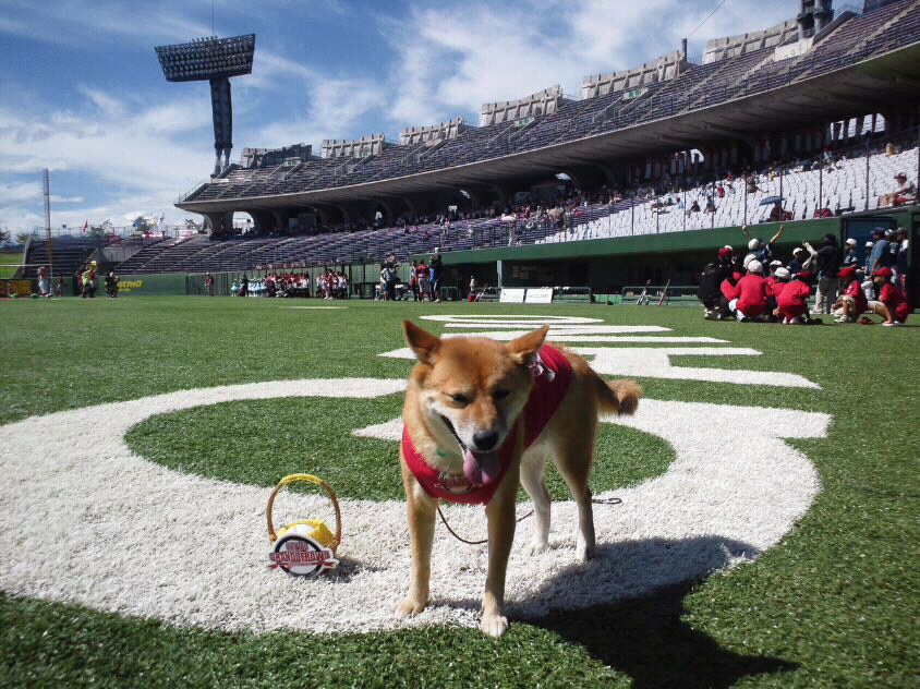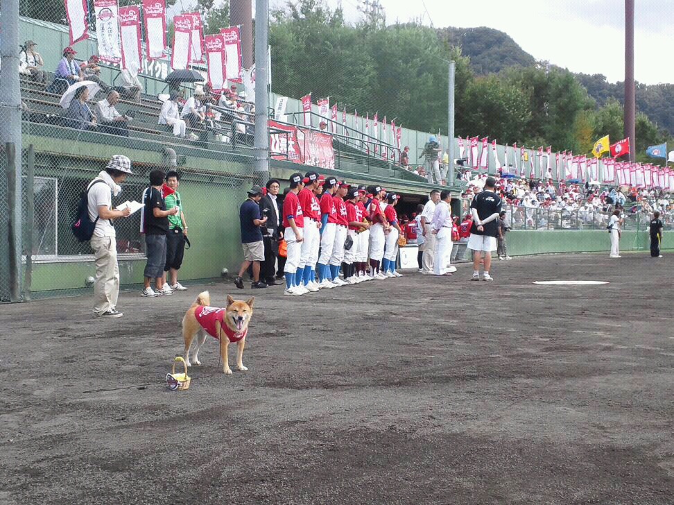 試合は13時から、わさびがボールを運ぶ始球式は13時少し前です。