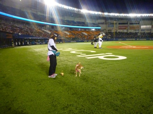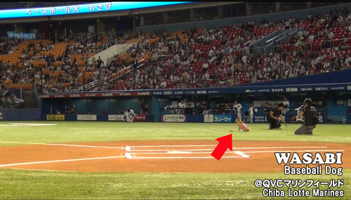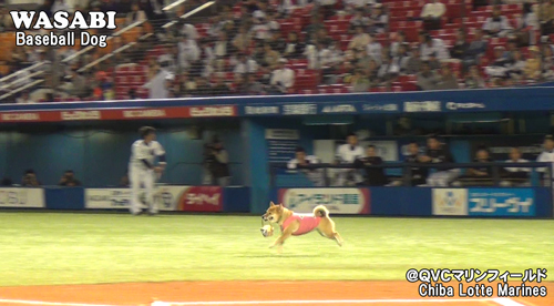 「柴犬初のベースボールドッグ」としてボールを運びに