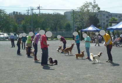しつけ教室の先生たちと「犬種あてクイズ」に参加です。