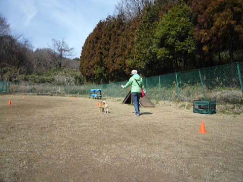 10m離れて対面。わんこは、そのポーズのまま動かないこと。