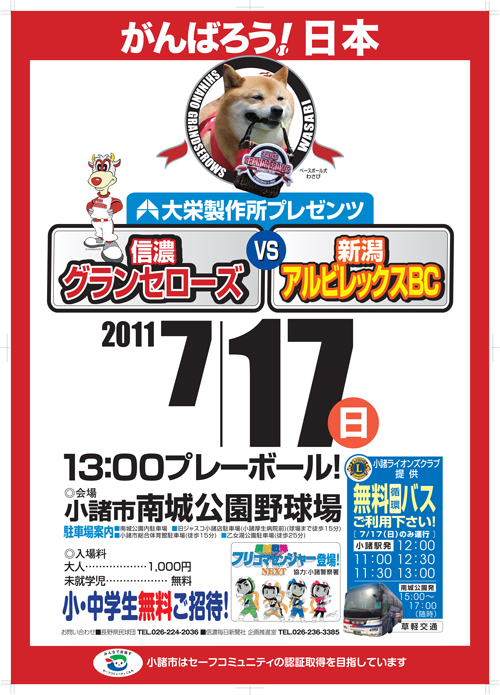 ・7/17(日)小諸球場にてベースボール犬!
