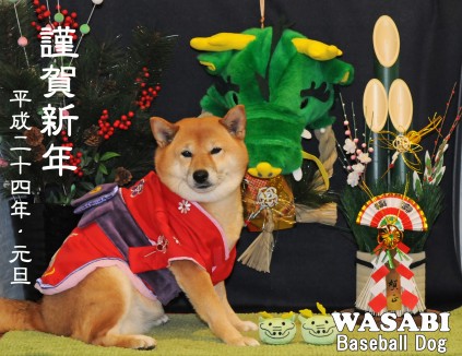 年賀状のわさびちゃん、ビシッと決まってますね!