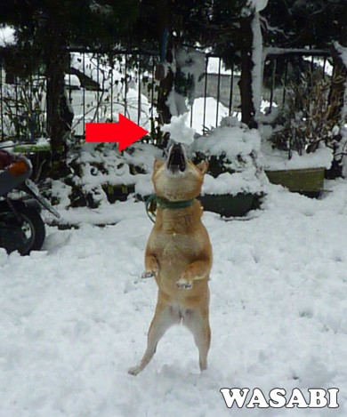 わさびちゃん、雪玉ちゃーんとキャッチしてますねぇ。