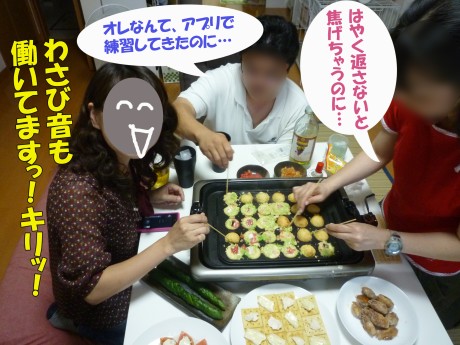 「貸して!早くタコ入れないと焦げちゃうよっ!」