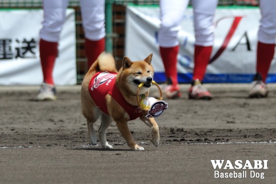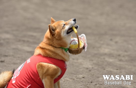 こうして無事に、ボールのカゴをマウンドまで運んでくれたわさび。