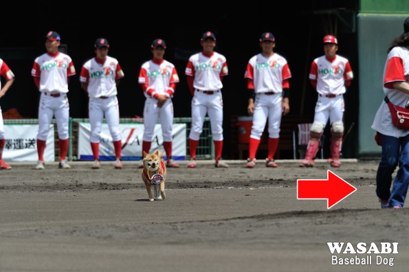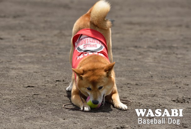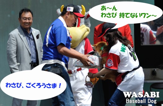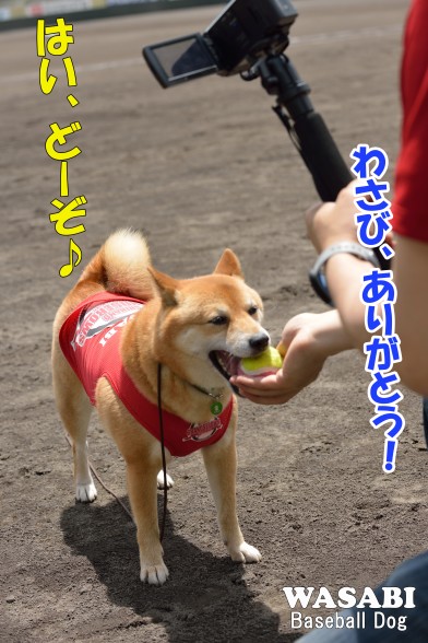 と渡って投げる時には、わさびはマウンドの後ろに誘導し