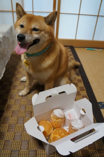 シュークリームと わさびおやつの土産をもって やってきたのでした(^^)