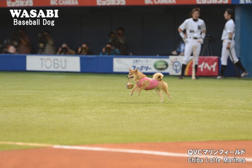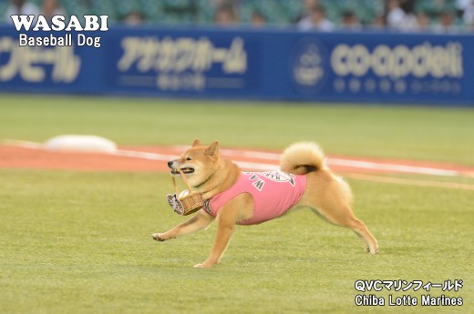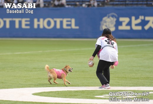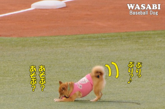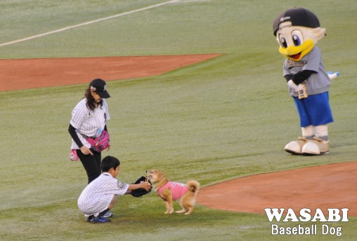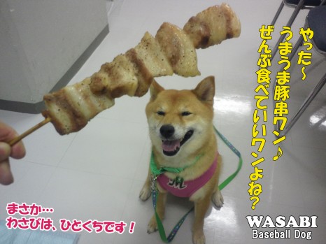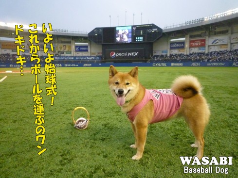 球場アナウンスで「ベースボール犬わさび」が紹介されました。