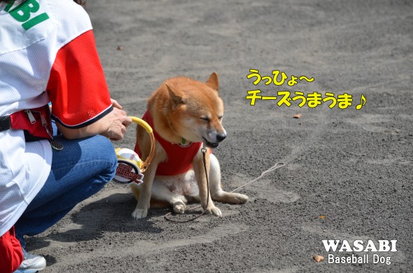 わさびを、グラウンドの雰囲気に慣らすため、