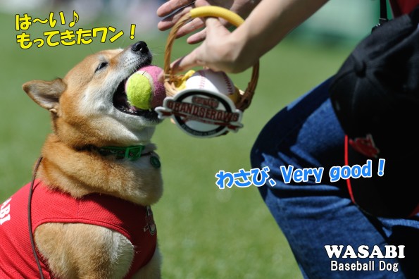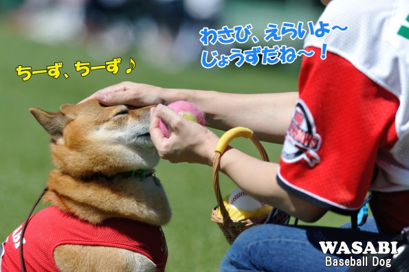 実は、この日、わさびはベースボール犬として球場にデビューしてから