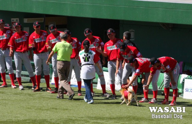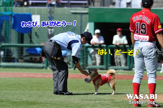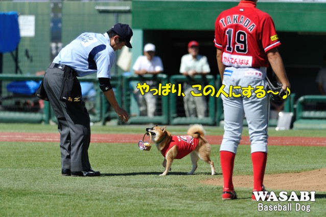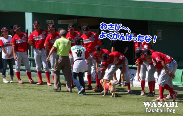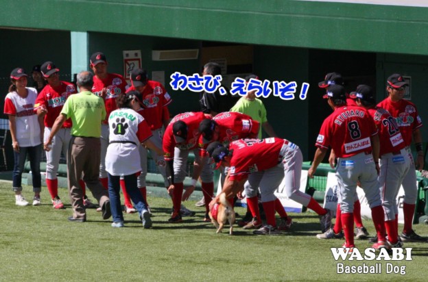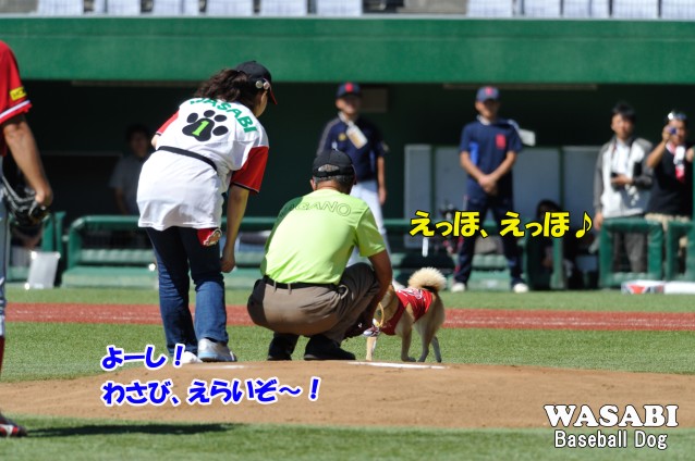 選手に、ほめられる(ほめられてる…?)わさび(^^;