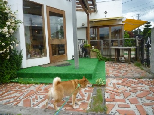 ↑ わさびがいるところは、お店の前のドッグランだよ~