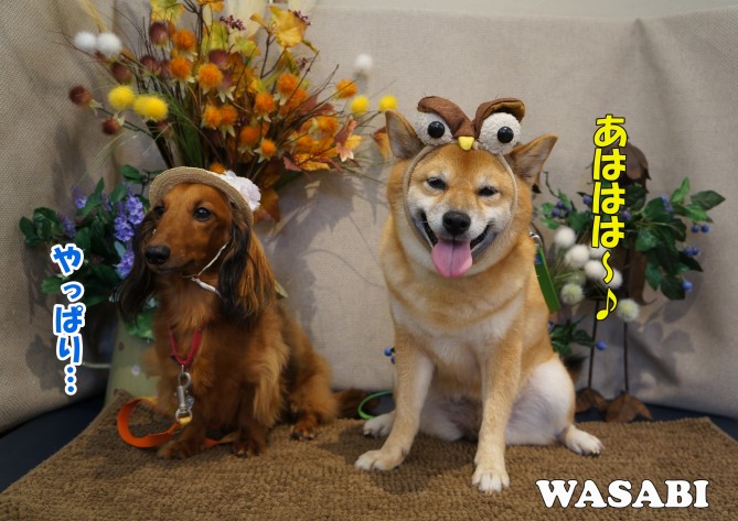やっぱりわさびちゃんは笑顔、大豆くんは帽子系の