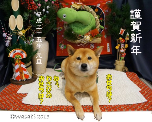 縁起物と一緒にわさびちゃん、良い年賀状ですね。っと思ったら、アンマン乗せられてるし~。