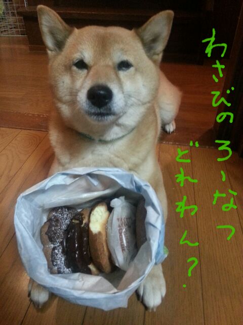 ドーナツも買ったのね。もうすでに誰かかじってあるワンね。誰がかじったかは想像できるけどね。