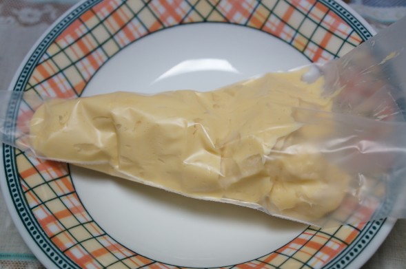 本当にしぼり袋から生地が離れなくて困るくらいの硬さにしてみました。