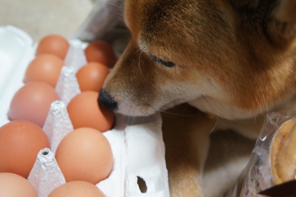 わ~、本当にわさびちゃんがたまごの匂いを嗅いでいるぅ~。