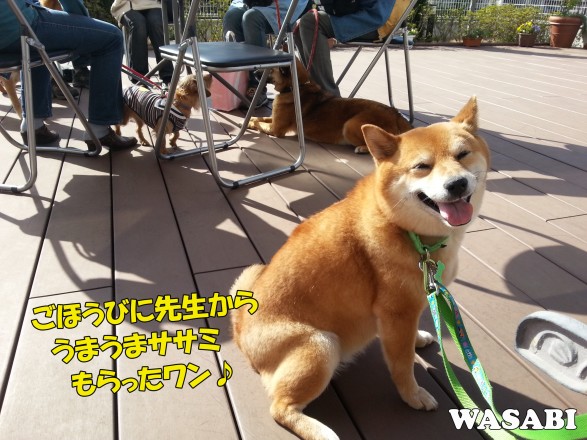 「毛並みがキレイだね~」とか(←シャンプー受難がんばったワンもん!!涙)