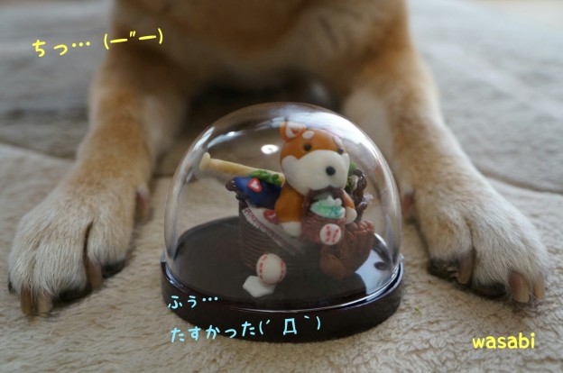 イラストのクールくんも柴犬キャラクターグッツによくあるちょっとダサメな感じがなくって(いいな)って思ってたんだけど、これはわさびちゃんのイメージぴったり!しかも3D+頭におリボン♪レディーなベーススボール犬に仕上がっててステキ。わさび音さんが涙するのも、わさびちゃんが執着するのもわかるな~。宝物だね!
