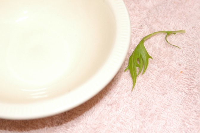 やっぱり、水菜の葉っぱは嫌みたいです(笑)