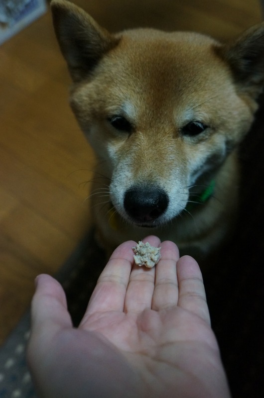 味見のために、眠い目こすって起きてきたわさびに【ポチッ】と♪