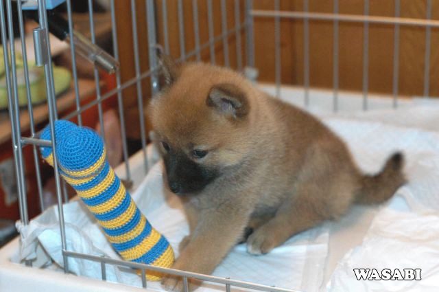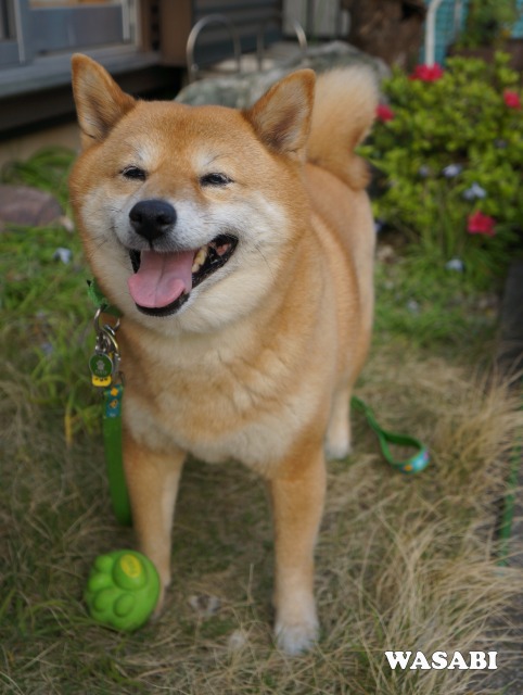 仔犬のときから、ボール遊びが大好きだったわさび。