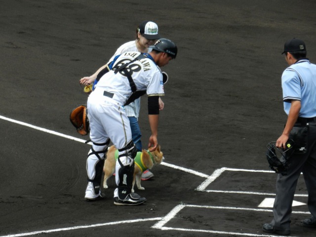 無事に大役を果たし、ドヤ顔でマウンドから戻るわさび ↓↓↓