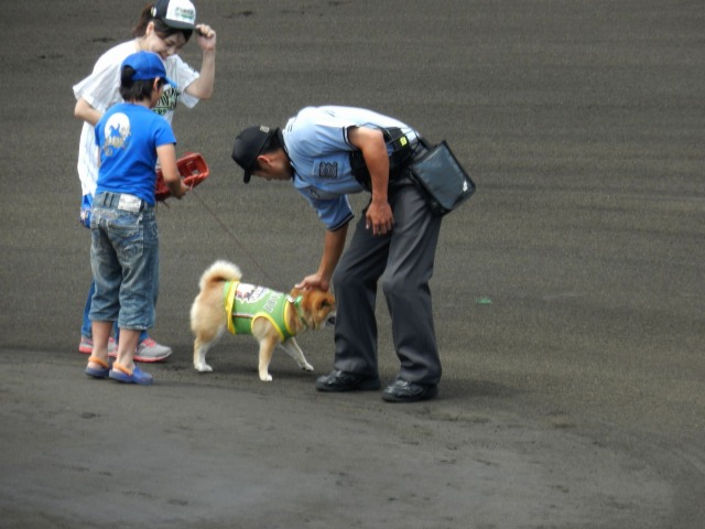 と球審さんにも、なでなでもふもふ してもらうわさび ↓↓↓
