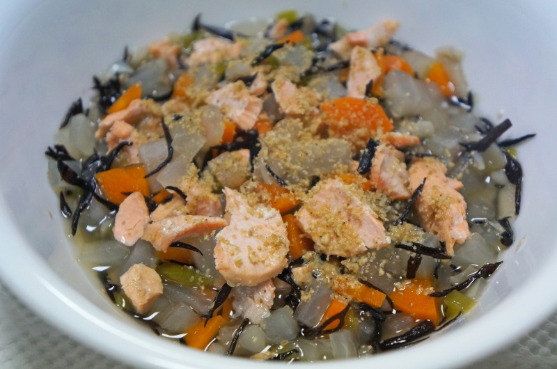 鮭、大根、ニンジン、ひじき、きのこ、などなど。