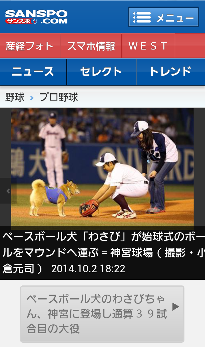 明治神宮球場のサイトの右下に「わさび」の記事が。
