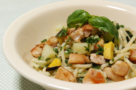 6)全部をバジルとあえて、盛り付ける。