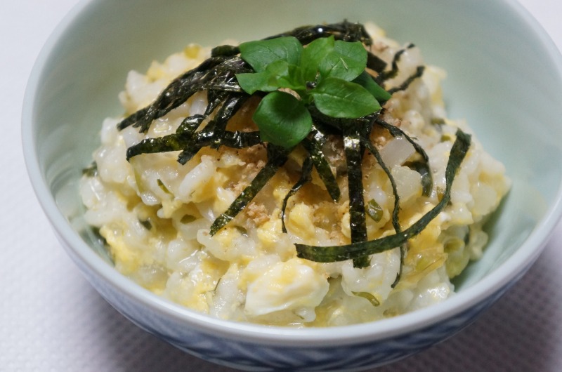「やっぱ、おかゆは たまごとじワンね♪」