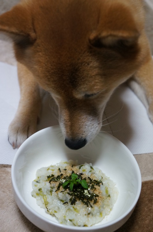 わさびも「わんこ七草粥」を食べました。