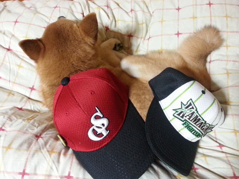 (始球式前夜 翌日の準備をして、すやすやわさび)
