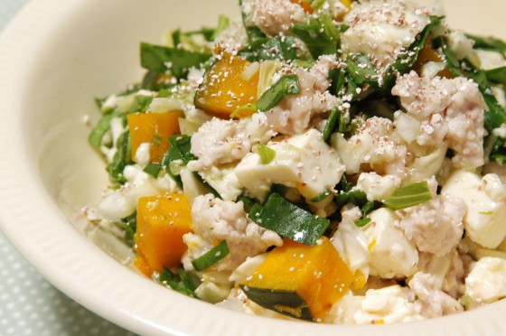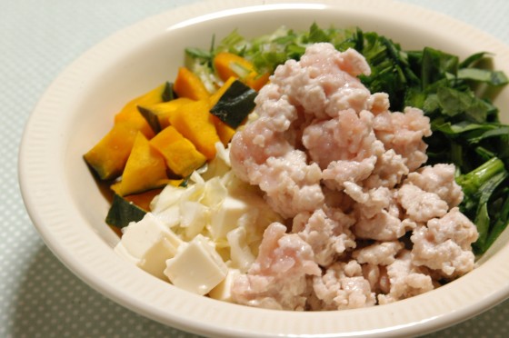 その代りに、豆腐やイモ類、そして野菜でカサを増し、