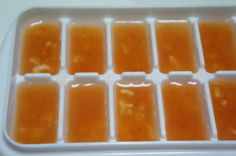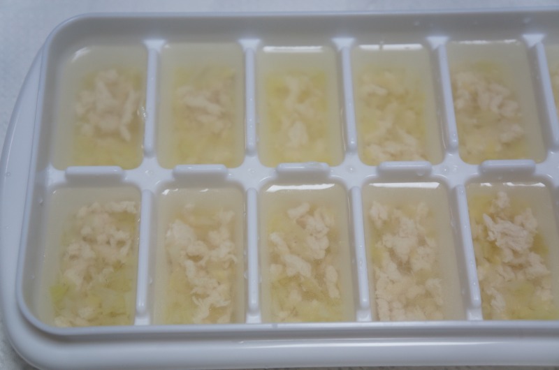 出来たてアツアツを冷ます時に、チキンスープの氷をポンをいれて…