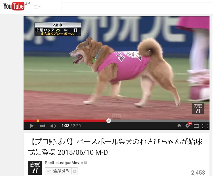 「これはカワイイ!!ベースボール犬わさびが登場」の動画(こちら)と同じ、、