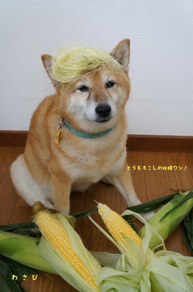ということで、わさびも「とうもろこしの妖精」になってみました