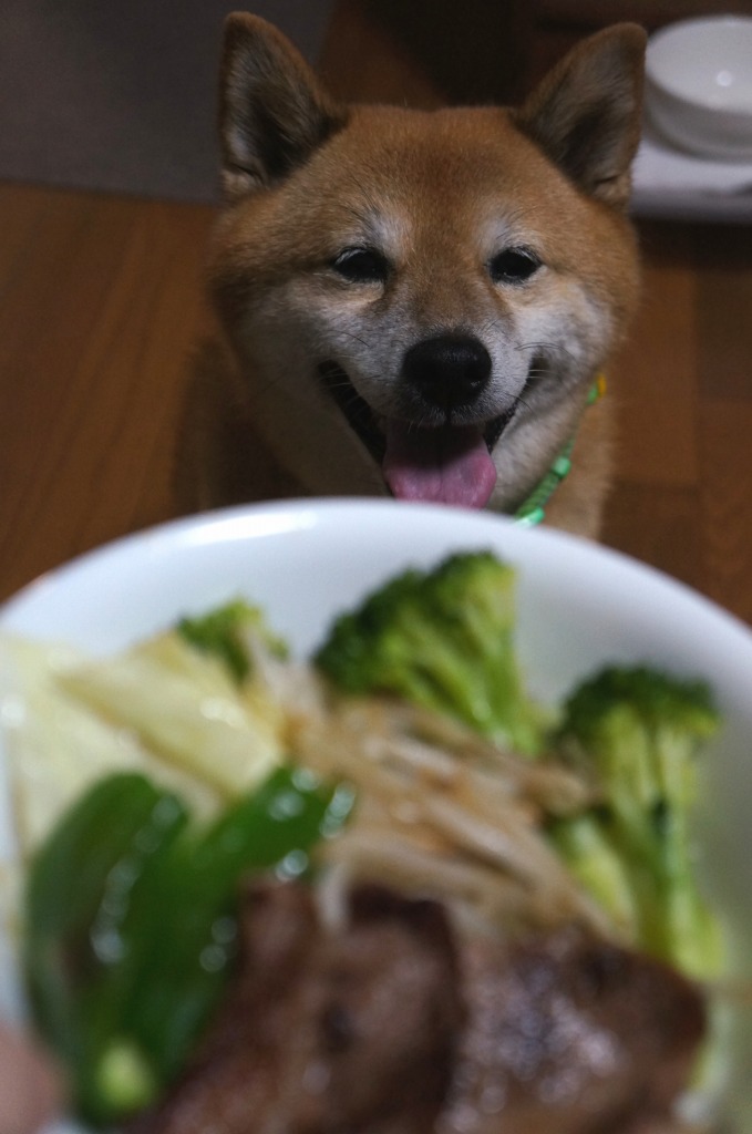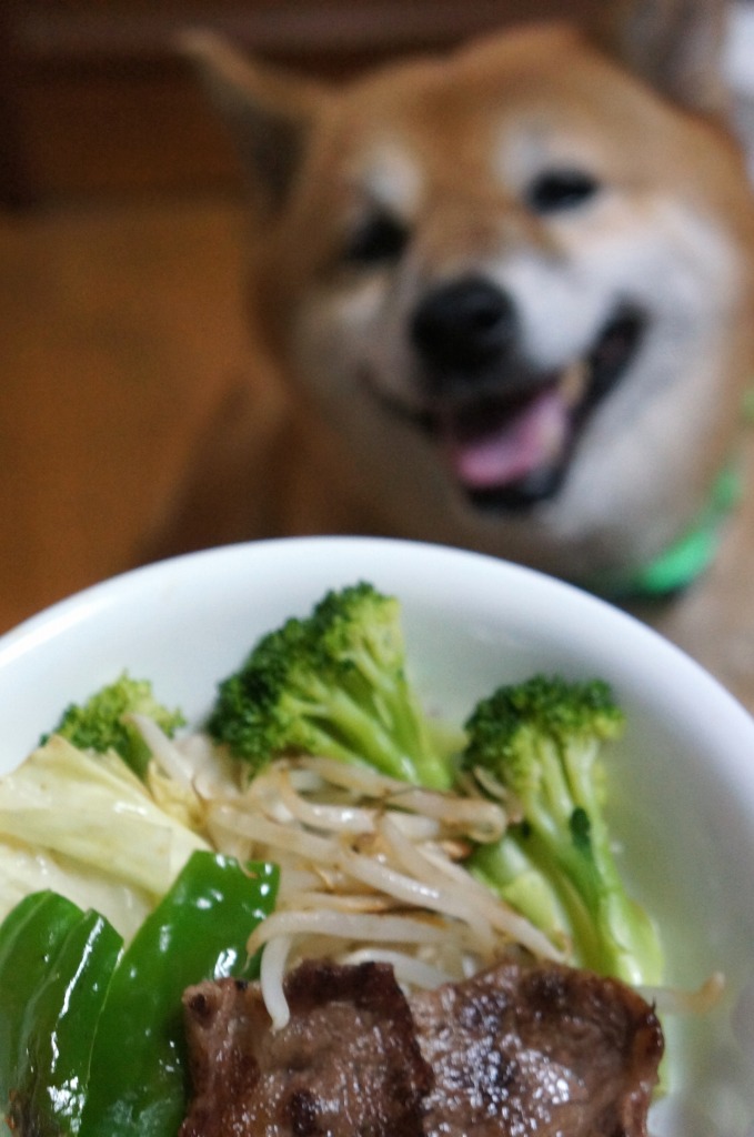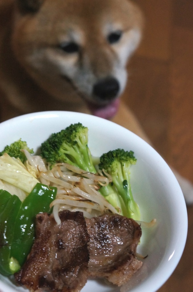 肉食女子のわさびちゃん、おいしそうなお肉ね。