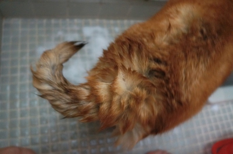 わさびご自慢の、もふもふ ふさふさ しっぽも…お水に濡れるのをイヤがる子が多いですよね。